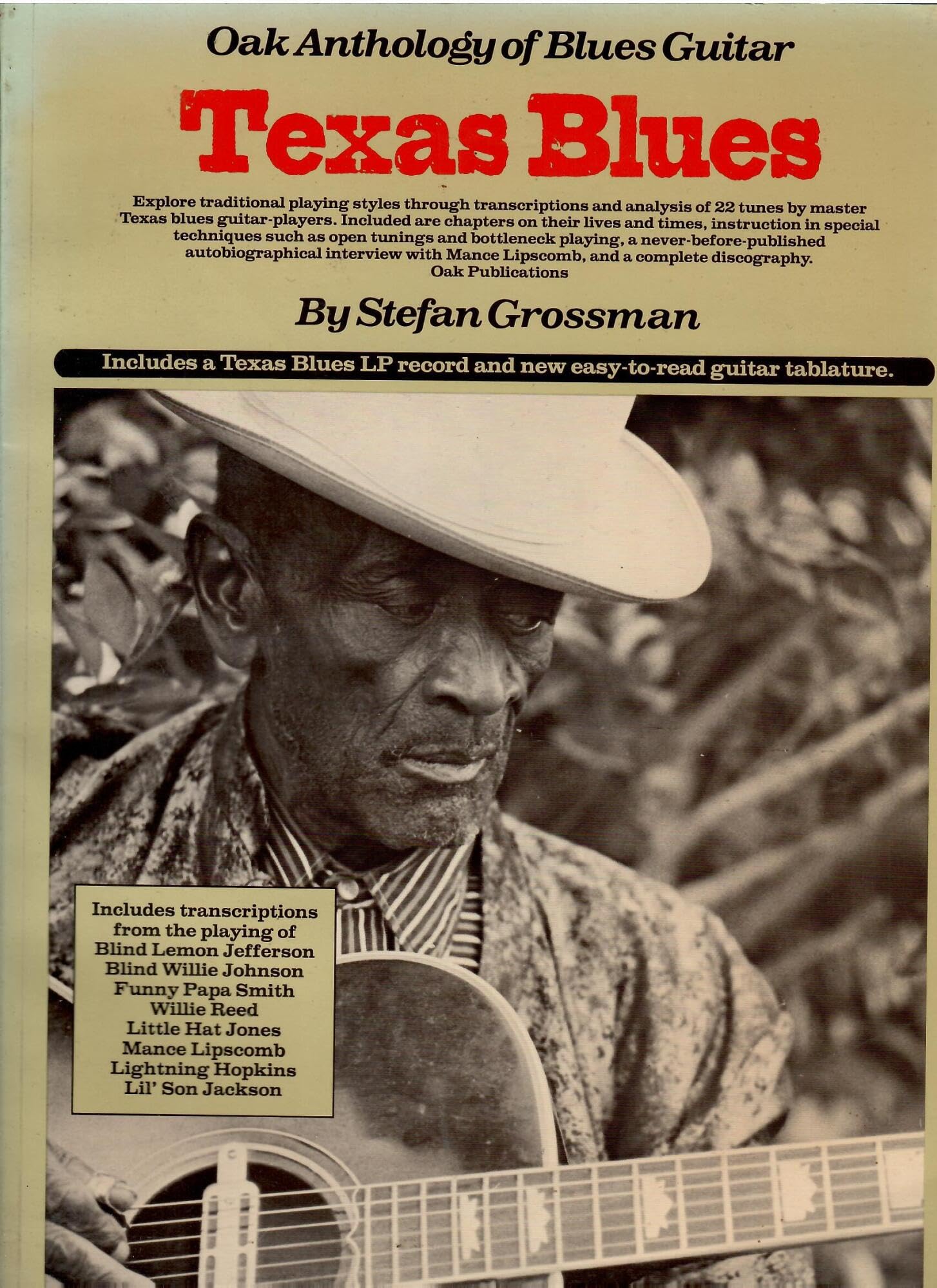 Explore traditional playing styles through transcriptions and analysis of 22 tunes by master Texas blues guitar players. Instruction in special tuning and bottleneck playing and a complete discography.